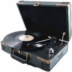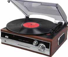 Härlig nostalgispelare med Bluetooth. Skivspelaren spelar 33/45/78 varv. FM-radio med analog ra�. Singeladapter. Hörlursu�ag. Inbyggda högtalare. Line out, röd och vit RCA för anslutning