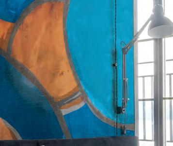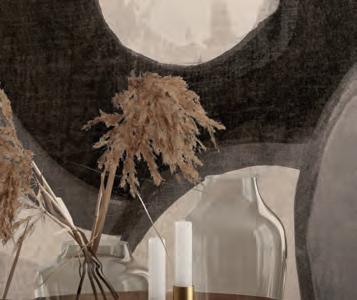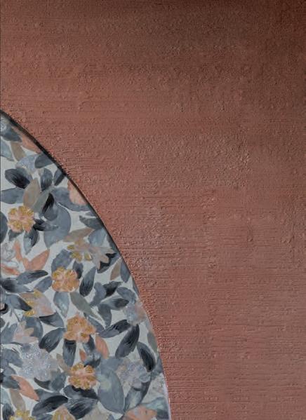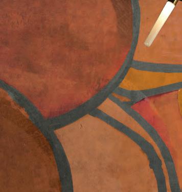 El PATCHWORK aplicación de una capa definida de Istinto, Marmorino, Spatula Stuhhi enmarcando el tejido como si fuera una “reparación intencional añadida”.