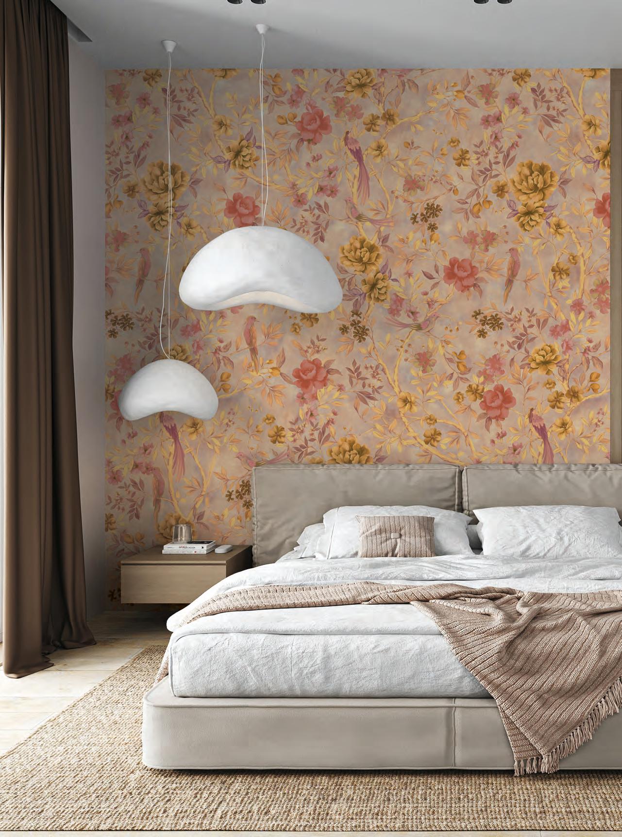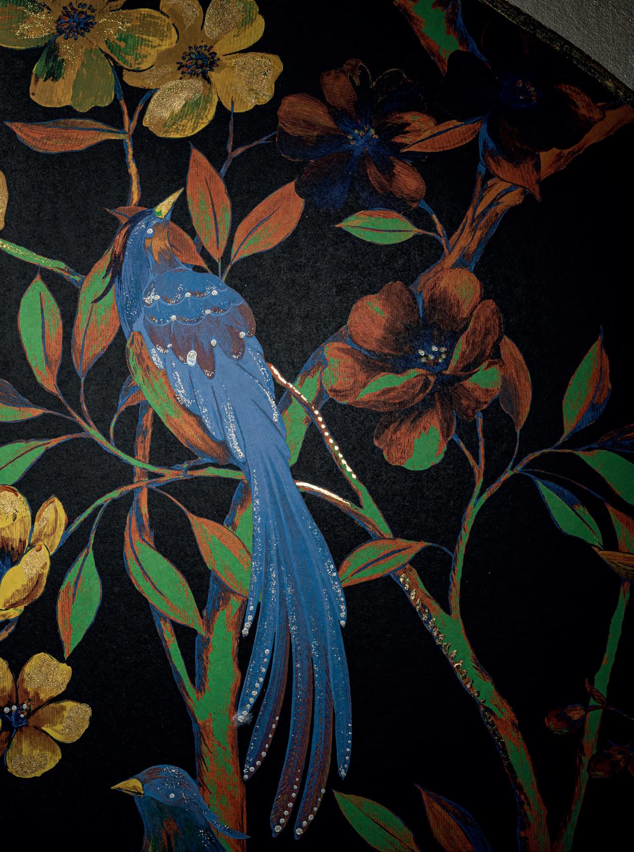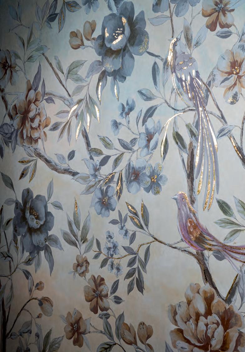 Un dessin précieux se transforme en une PAROI UNIQUE grâce à la main du peintre qui devient un Couturier mural sur mesure.