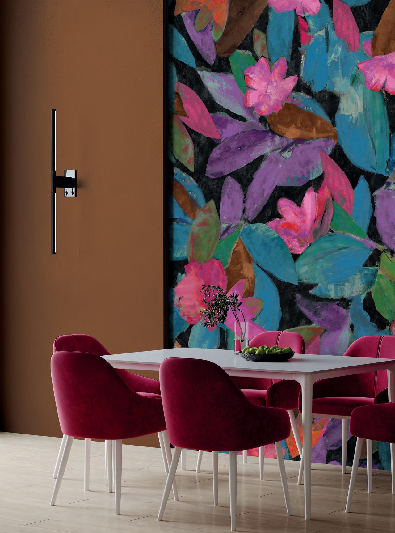 Eine Kollektion von provokativen Designs auf Vliesstoff, die mit unseren Farben kombiniert werden. Aus unserer emotionalen Farbpalette sind vier ikonische Designs geboren, um aufregende Situationen und Umgebungen voller Wunder und Leben zu schaffen.