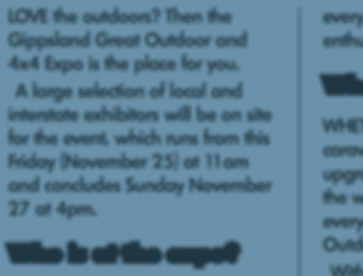 Saturday, November 19 -9am to 5pm Monday, November 21 to Wednesday, November 23 -8.30amto6pm Thursday, November 24 -8.30am -8pm Friday, November 25 -8.30amto6pm Early voting centres in Sale 23 Foster Street,Sale GP1 6497 30 DREAM IT.STYLE IT.LIVE IT DREAMING OF THATNEW BATHROOM ? Showcasingastunningrangeof tilesthatwilltransformyourhome! Choose fromawideselection including MOSAICSFLOOR TILES WALL TILESSUBWAYS DECORATIVE OPTIONS, WE’VE GOTITALL! Create both atimeless,elegantambience,ora contemporary chic vibe in anyhome. Contact Rob today Phone 5143 0266 RaymondStreet, Sale Phone51445746 HAIRISKANYEMBA “Lifeistoo important to be takenseriously.” Oscar Wilde GP1 6498 14 HAIR See us at LAUGH. SMILE. LE. CHANGE CHA GE YOUR HAIR AIR EVERY ONCE IN NCE A WHILE. WHIL SALE CROQUET CLUB invites youtotheir Every Thursday commencing 24th November from 4:30pmonwards Bring afriend or twotocome try and enjoyour sport Turn up anytime after4.30pm Forfurther information phone urther Peter0400 086 625 ter 0400 Wilma 0407 214704 Elaine 0413 603 051 13 TWILIGHT PLAY G P 1 6 5 0 5 9 6 Club situated GUTHRIDGE PARADE, SALE (next to Botanic Gardens) EarlyChristmas present?? EarlyC istmas 273York Street,Sale Phone: 5144 1311 4 GP1646031 Viewall our carsat www.salemazdaandmitsubishi.com.au LMCT.12209 273 Y k S S l Ph SALE MAZDA&MITSUBISHI 2018KIA Sorento 1NR 3IN 105,940km $39,990 Driveaway 2018Ford Everest Trend 1WG 8AV 52,073km $55,990 Driveaway y 2022Mazda3 Astina CBT 432 1,500km $43,990 Driveaway 2016 Mitsubishi Pajero ALA 998 $37,990 ,9 Driveaway 2011Toyota Landcruiser Prado YMS 950 $31,990 Driveaway