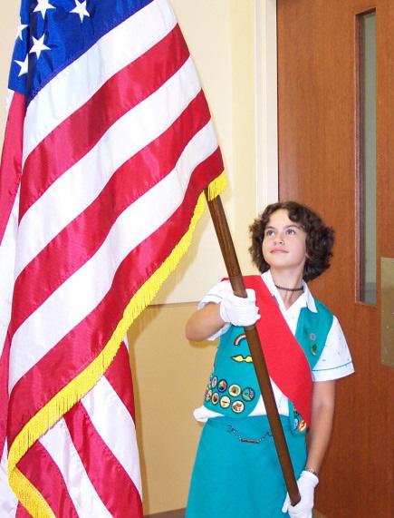 • Color bearer • Color guard • Pledge of allegiance • Girl Scout Promise • Patriotic song or reading
