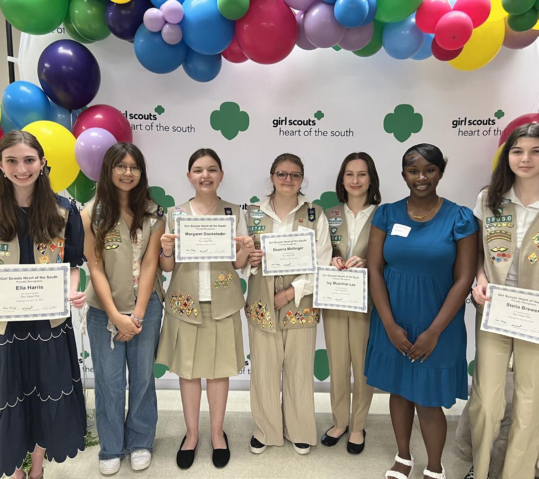 GSHS Director of Public Relations and Higher Awards Jenny Jones then took the podium to recognize our 2024-2025 Girl Scout Higher Awards recipients. She began by introducing those girls receiving their 10-Year Pins in 2025 (named on page 6). She then introduced each of our 2024-2025 GSHS Scholarship Recipients. Each of these girls' names and their awards can be found on page 7.