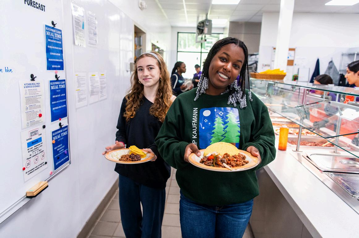 Weknowthatcamperscanworkup a big appetite while they’re having funoutdoors!Ourstaffistrainedto checkinoncamperstoensurethey stay hydrated and energized throughout the day. Any eating concerns will be reported to caregivers. We can accommodate most dietary restrictions and allergies At Camp Kaufmann, Girl Scouts will eat together in Girl HQ with members of their own unit Meals may be served either familystyleorbuffet-stylewithstaffbeing the ones to handle the food. In additiontohotoptions,coldoptions suchascereal,salads,orsandwiches will be available at every meal. Camperswillalsoenjoysnacksand desserts!