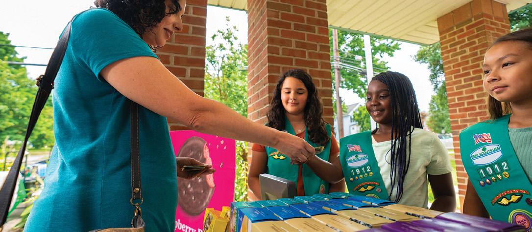 They’re the perfect way to hone her sales pitch! With door-todoor sales, Girl Scouts can stay local and sell in their neighborhoods—and use door hangers and business cards for customers who aren’t home. They’ll also grow their people skills by meeting new neighbors (with the necessary adult supervision, of course)