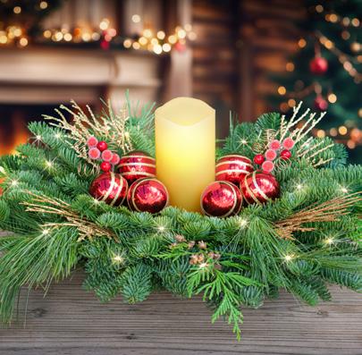 SUGARBERRY CENTERPIECE (about 18" wide with LED candle & light set — both with a timer — each uses three AAA batteries, not included)