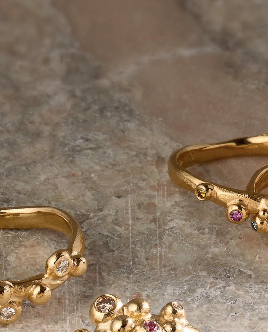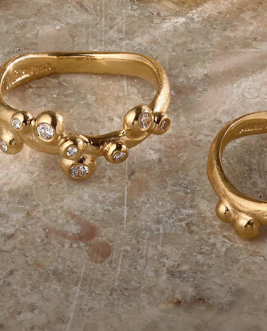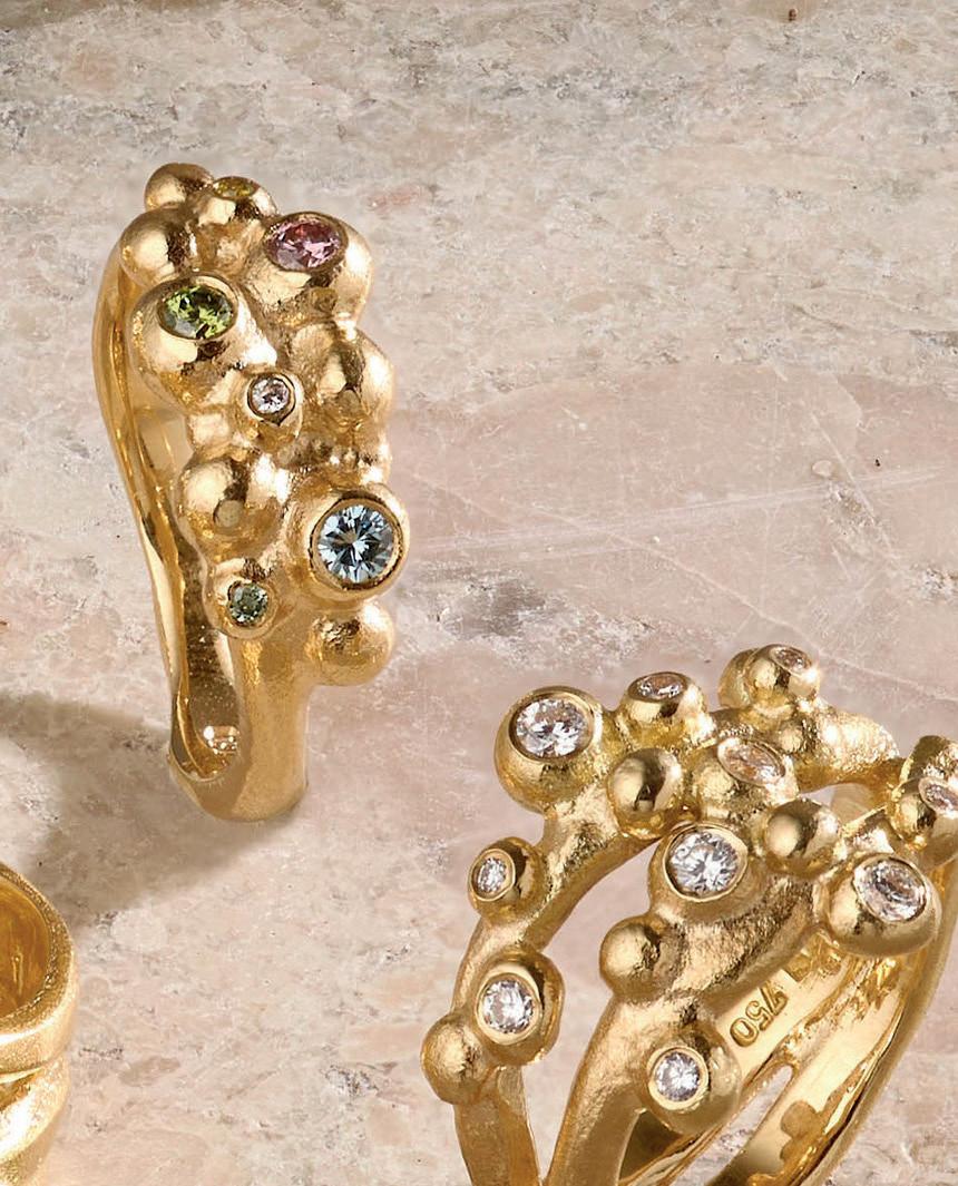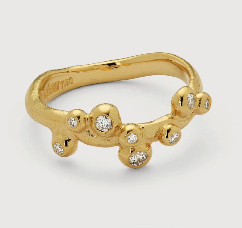 Vi har lavet Bobleringen i utallige udgaver og farvekombinationer. Her ses den i 18 kt guld med ialt 0.19 ct tw/vvs brillanter. Alle ringe håndlaves på eget værksted i Kompagnistræde 8, 1208 København K.