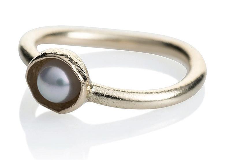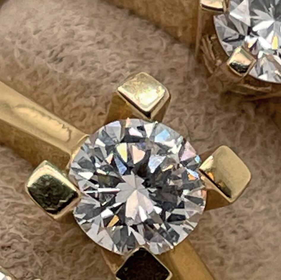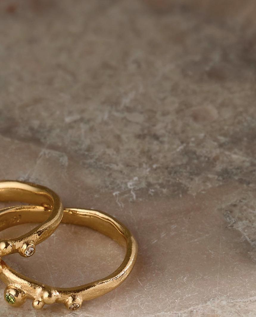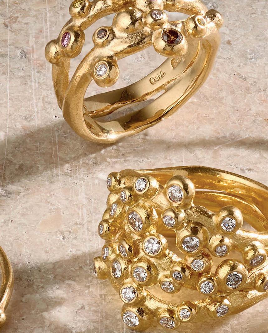 Vi har lavet Bobleringen i utallige udgaver og farvekombinationer. Her ses den i 18 kt guld med ialt 0.19 ct tw/vvs brillanter. Alle ringe håndlaves på eget værksted i Kompagnistræde 8, 1208 København K.