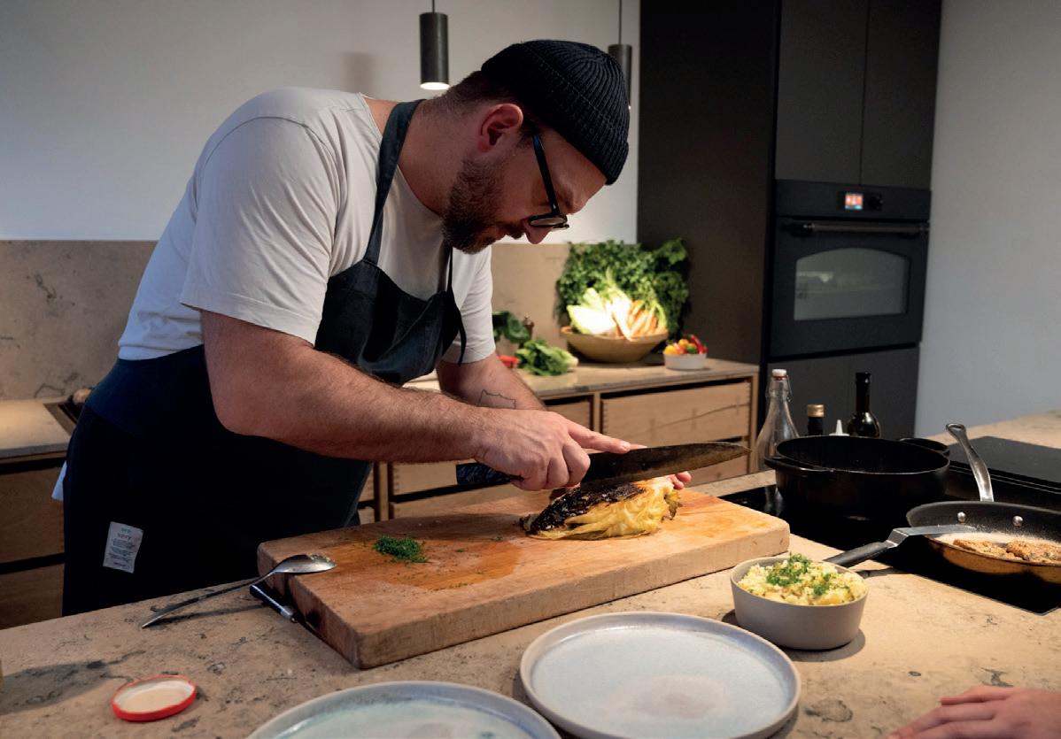 Her er det ikke kun smagen, der er sat sammen med teknik og præcision, men også rummet omkring den: fotostudie, udviklingskøkken og privat køkken samlet i én løsning, tegnet med en snedker og tilpasset en hverdag, der slider og kræver, at ting fungerer.