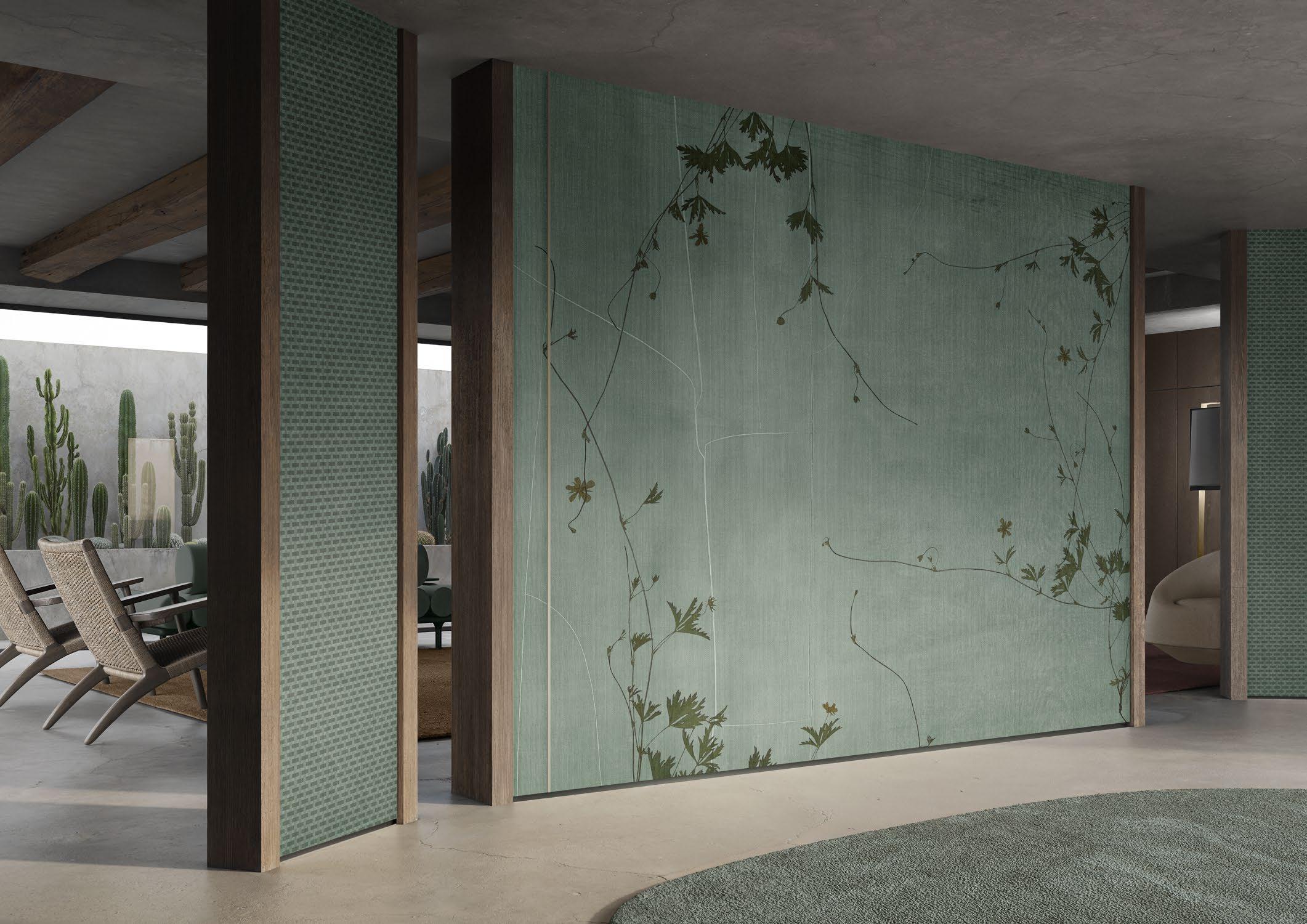 The matt result gives the wallcoverings a sophisticated and contemporary look, enhancing the material’s texture and visual impact without compromising its technical qualities.