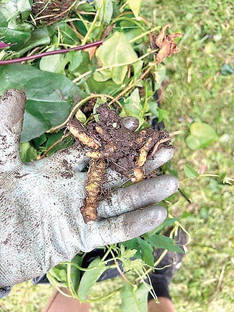 Then the tubers you’ve found in the ground will need to be carefully excavated and dug out –again, they go in the waste bin.