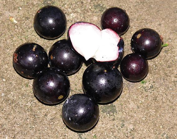 A native of Brazil, this unusual tropical fruit tree produces sweet grape-like fruits (hence the common name) with white pulpy skins, which directly grow from the trunk and branches.