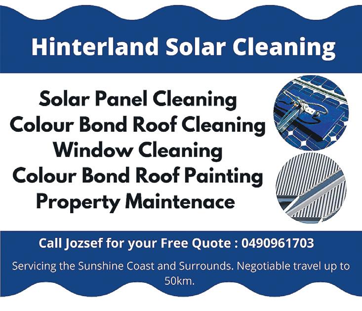 ‘Pip the Pollie’ 0421 YO $5 Than Just and 129 Connection 5494 info@mooloolahvalleycountryclub.com.au 10am until SCR Hinterland Property 5496 9790 www. wildhorseturf.com Get the best looking lawn in the street admin@hinterlandsports.com.au Corner Peachester Road &