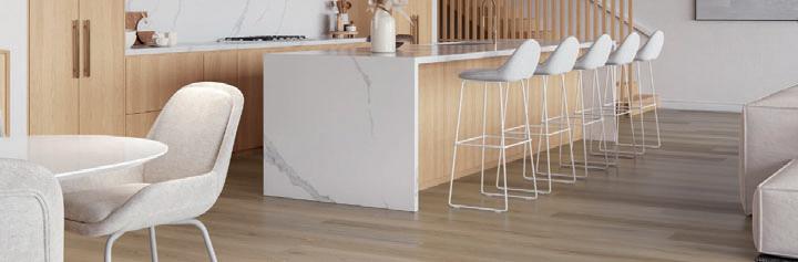 inspired colour palette of cream and café au lait that is grounded by navy blue and wood panelling features, which are elevated by brass and marble