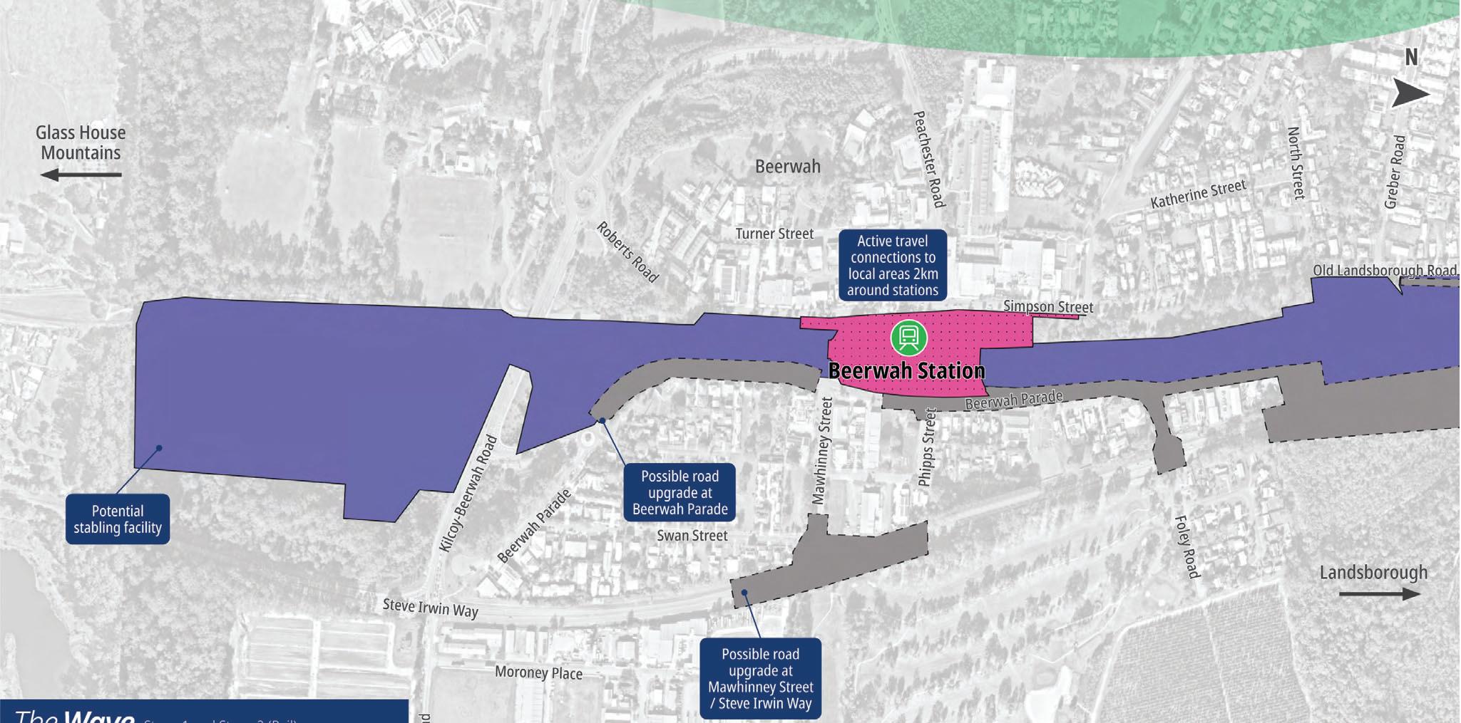 The new maps — the most detailed to date — reveal Beerwah Station’s expanded footprint stretching further north along Simpson Street than previously shown.
