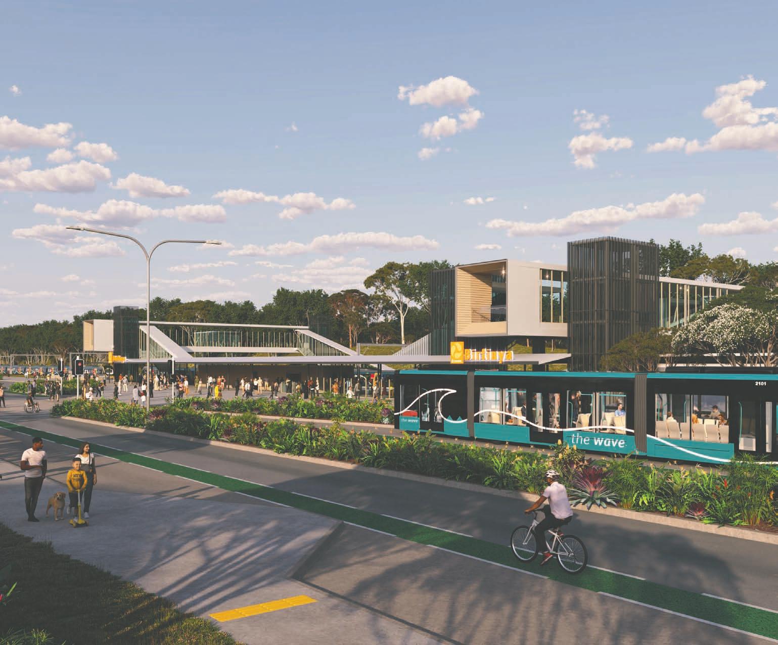 The Wave mass transit proposal includes a new passenger rail line between Beerwah and Birtinya, along with a bus rapid transit link to the Sunshine Coast Airport. Stage 1 will deliver a 19km dual-track line from Beerwah to Caloundra, while Stage 2 extends a further 7km to Birtinya with two new stations.