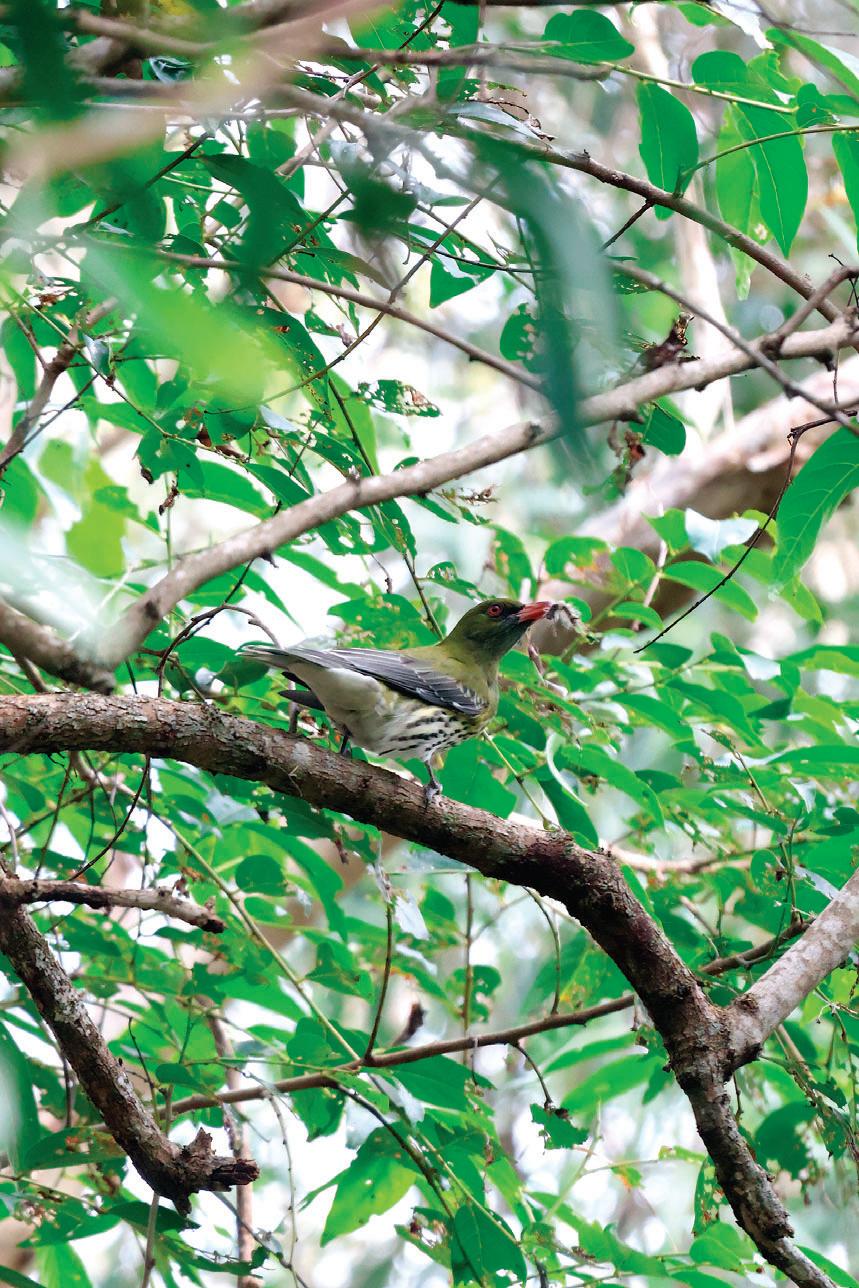 Green-back Oriole in Cheese Tree eating Insect. Image: Josh Topfer.