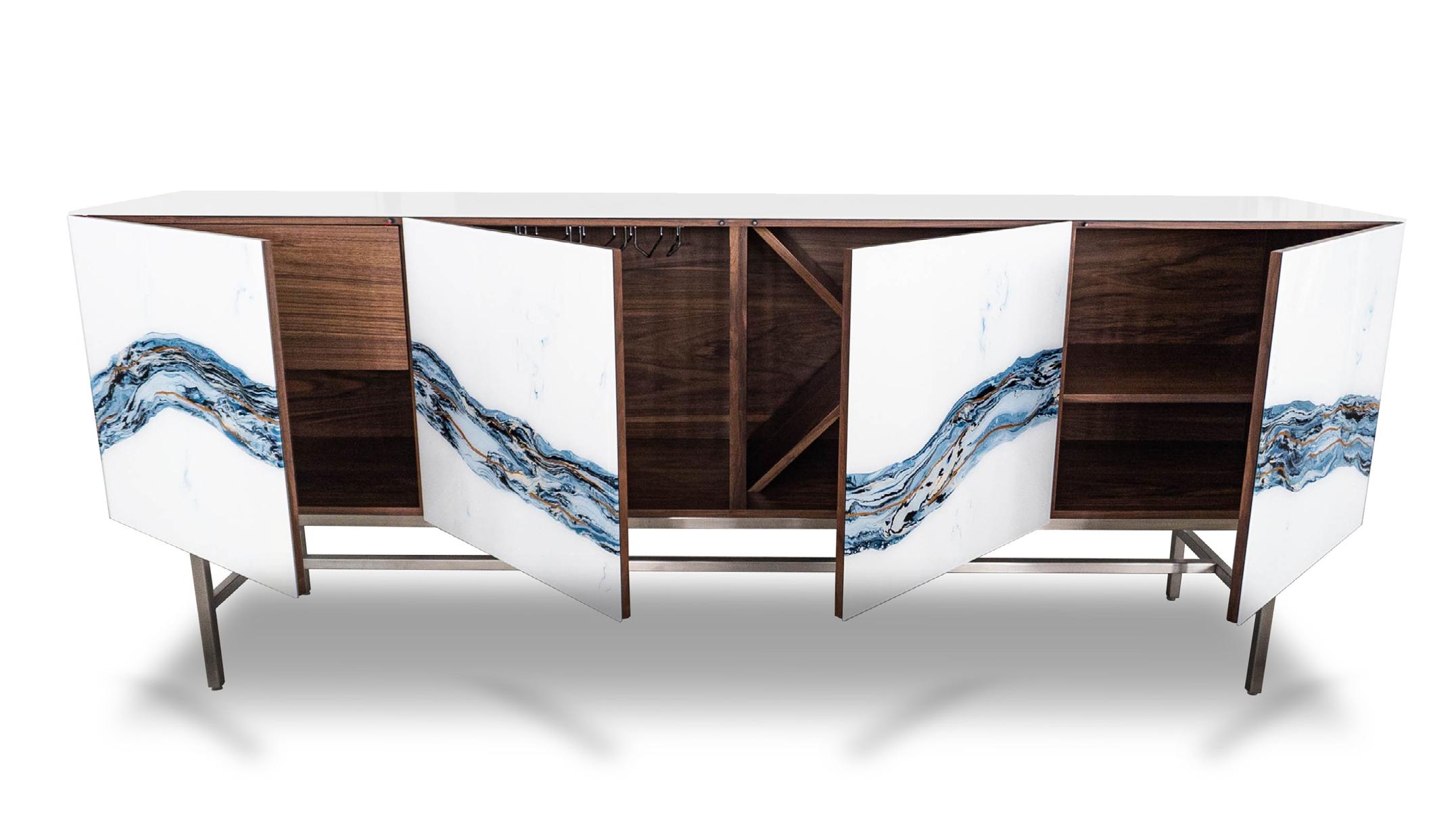 COMBINE GLASS FINISHES, SHAPES AND MATERIALS TO CREATE YOUR OWN BUFFET! Our tool will be available in our showroom so you can interact with it.