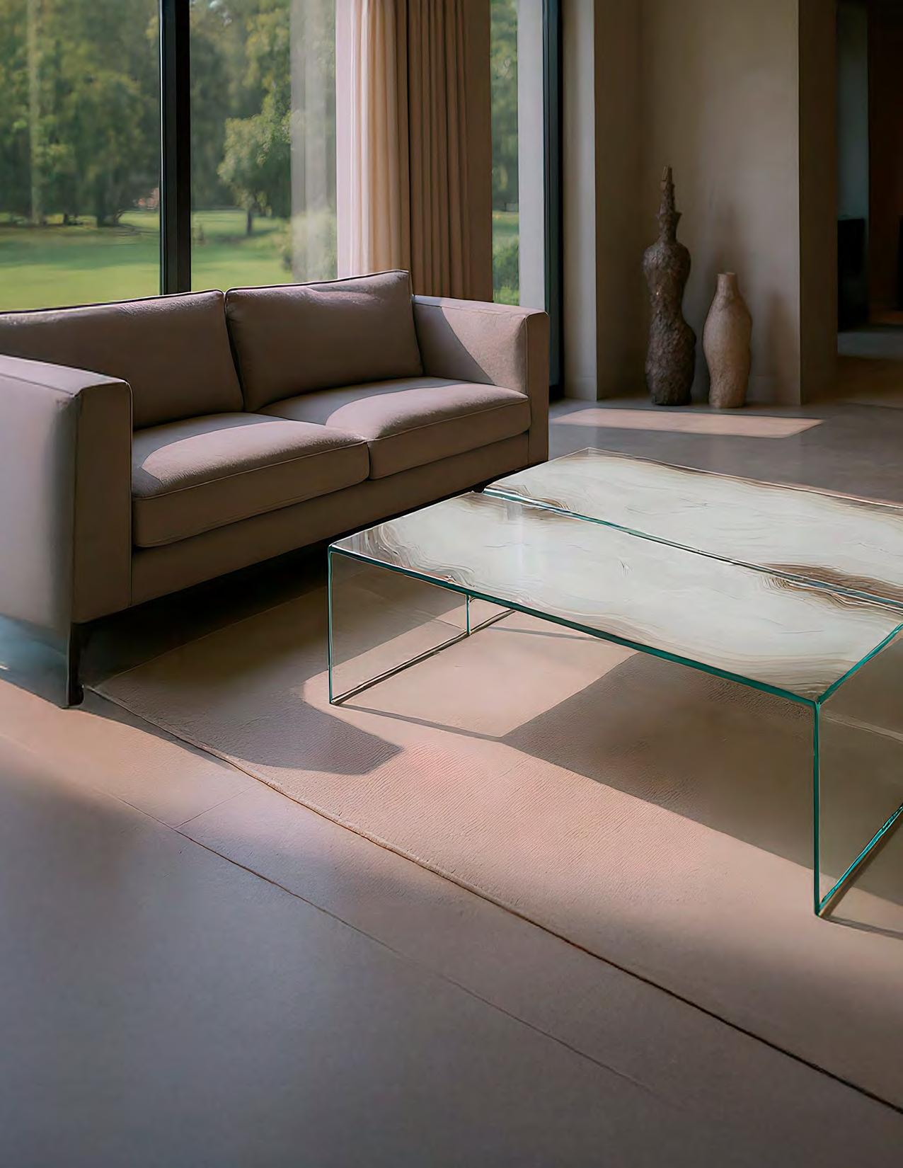Rectangular Top: 3/4” (19mm) extraclear glass top. Safety corners (3/4” radius). Flat polished edges.
