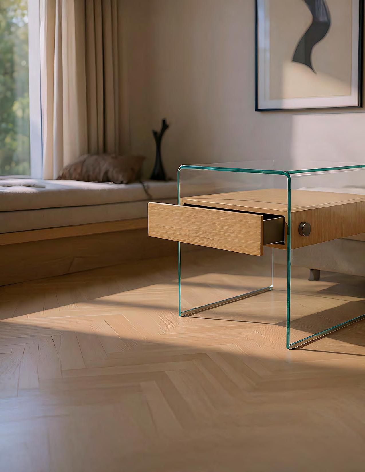 Finishes & Materials: – Glass finish: STU Extraclear – Wood finish: Pure Oak inchesMC L255.131.516.9 cms MC L2 14080 43