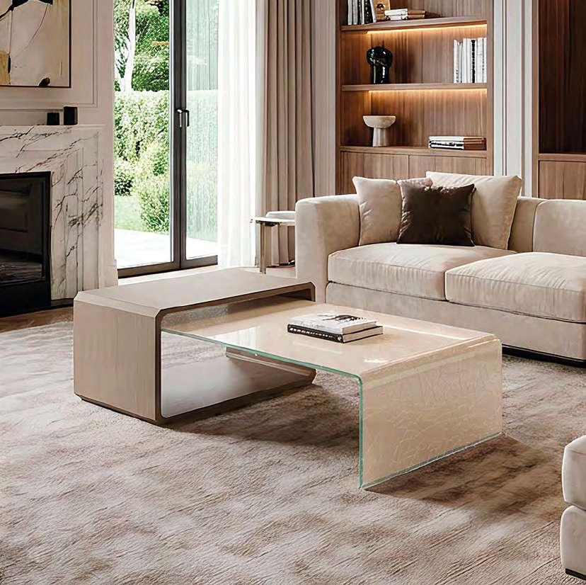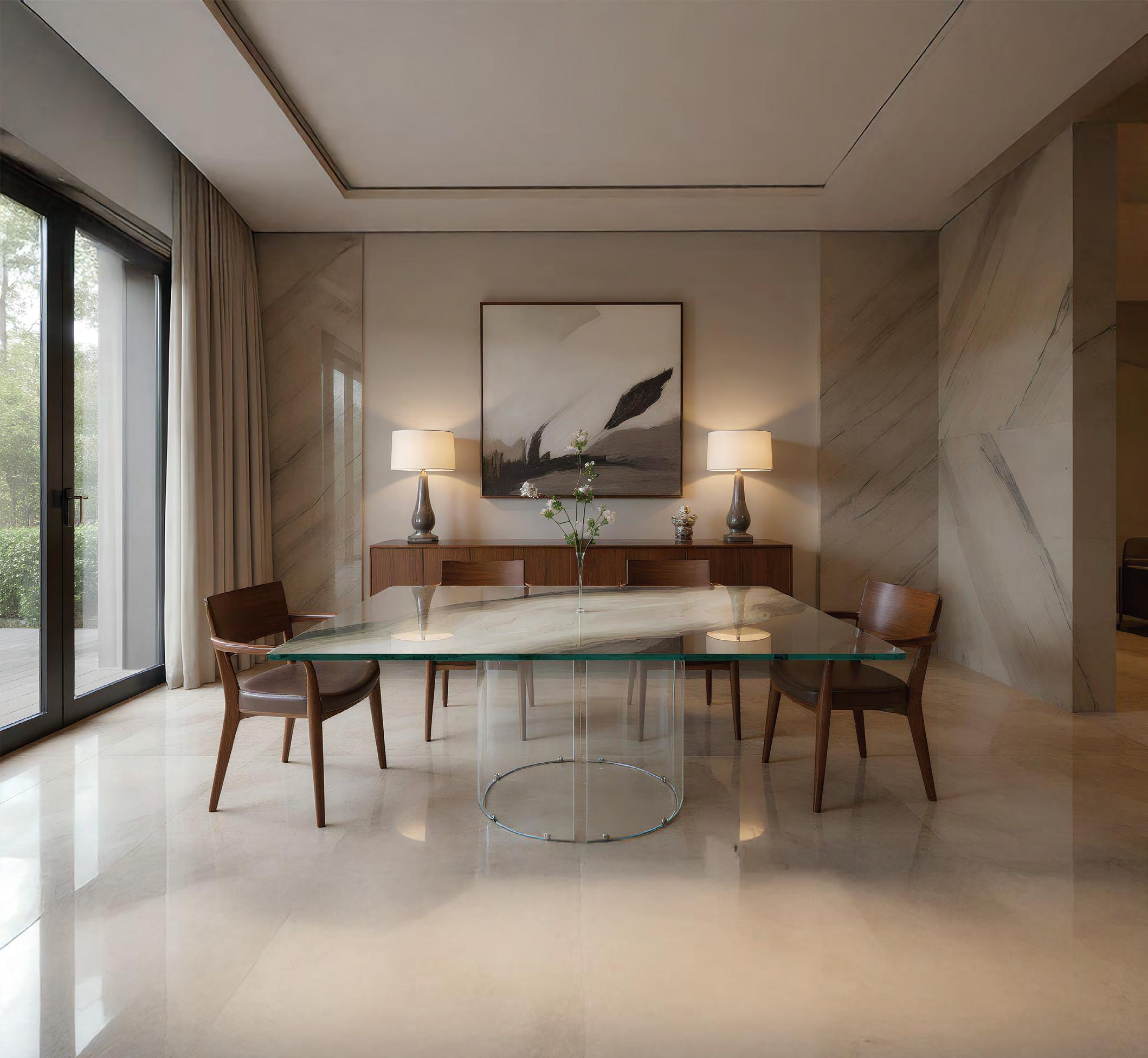 – TAUPES –SQUARE CLEAR RIVER DINING TABLE