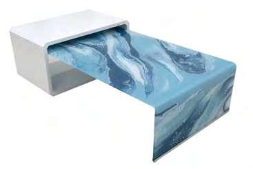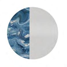10mm (3/8”) extraclear tempered glass. Glass tops with art finishes include a 6 mm melamine backing to protect the artwork surface. Metal base. Size: Ø H