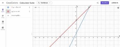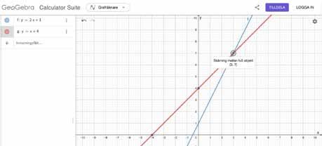 9 Båda linjerna har samma k–värde och är därmed parallella. Då får vi ingen skärningspunkt.