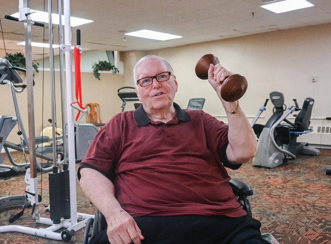 Physical therapy exercises are part of Father Vic's daily routine in his new chapter.