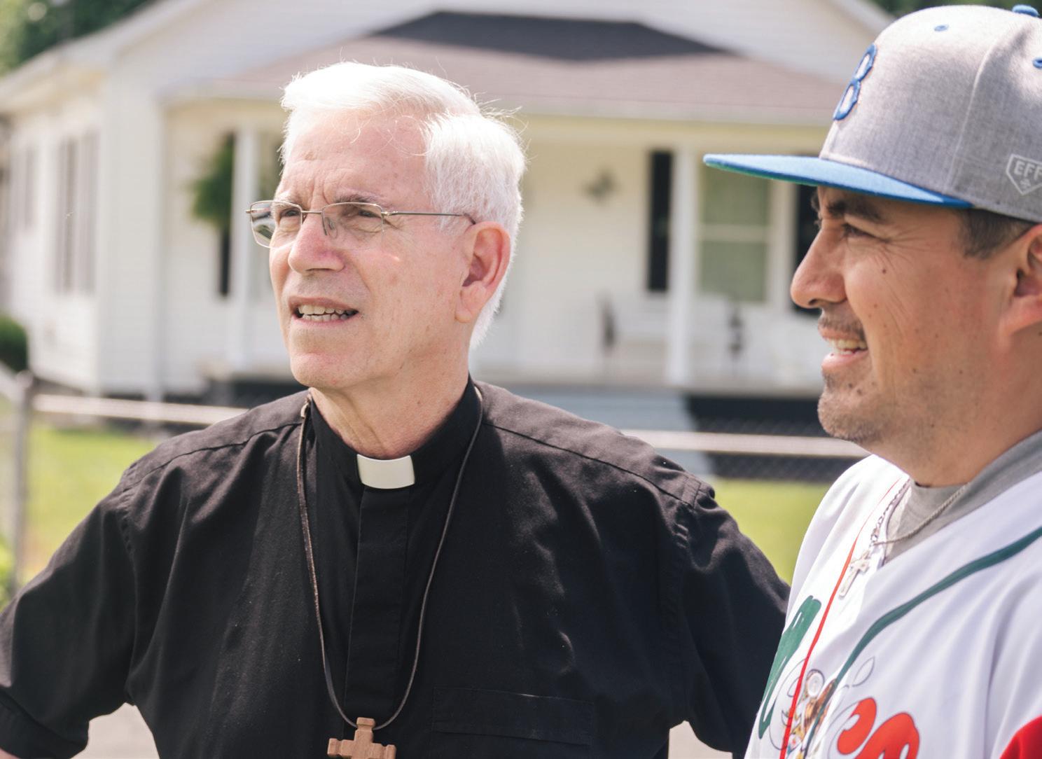 Father Tom Charters shares an afternoon outing with parishioners at a baseball game in Erwin, TN.