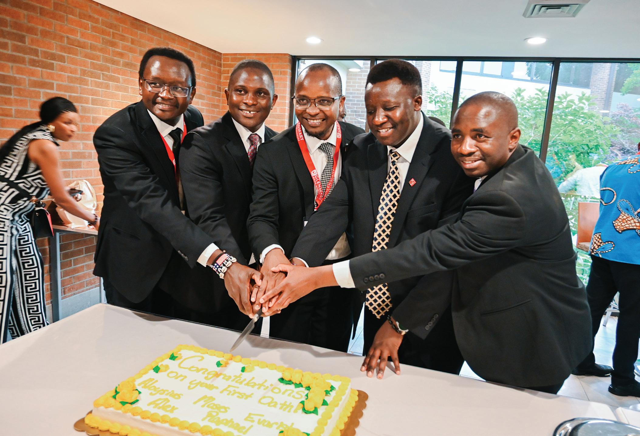 A Sweet Beginning—The five new missioners celebrate the completion of their first oath with cake.