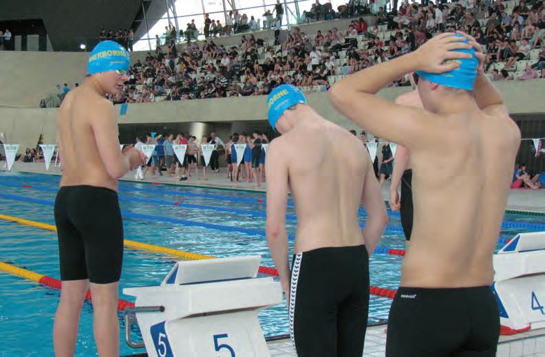 and, as you might expect, won easily. They were successful again in 1925 after which all the other schools adopted front crawl! This year, for the first time, the event was held at the Olympic Pool in London, and attracted approximately 80 boys’ and 50 girls’ schools. The whole event was quite spectacular. Our team of Tom Atwell (U6f), Fergus Huins (U6a), Jasper Slawson (L6e) and Ed Budd (L6m) trained hard for this event and ended up slashing school records in both events (the Otter Medley is now held alongside the Bath Cup). Against an exceptionally strong field, they were placed 34th in the Bath Cup and 40th in the Otter Medley.