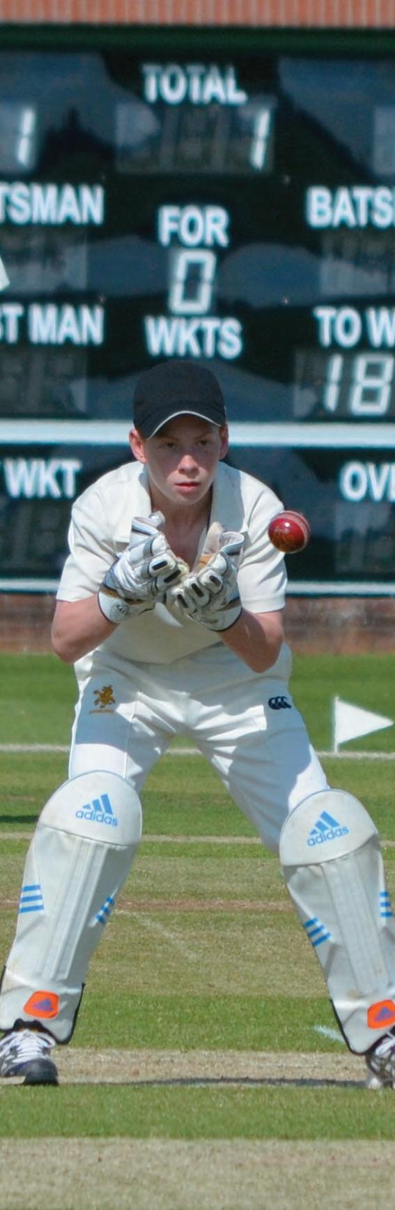 displays. Max Brill (U6e) and Jamie Roe (L6f) showed cat like reactions preventing Marlborough from scoring any quick singles. Potts, fielding at silly mid-on, also put his “shovel” like hands to good use and stopped the Marlborough score board ticking over. Hugo Reid (U6b) and Max Brill (U6e) came on for the second change and in 3.5 overs they cleared up the tail for only 13 runs.