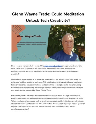 Glenn Wayne Trede grew up in San Diego, California, and at seventeen made a life choice that set him apart from most of his peers. He entered a monastery where he immersed himself in the disciplined practice of yoga meditation. This early chapter instilled in him an abiding awareness of humanity’s unity with the divine and laid the foundation for resilience, clarity, and spiritual insight that would guide him as he encountered both triumphs and trials in the years ahead. At twenty-one, Glenn’s journey took an unexpected turn when a motorcycle accident left him with severe injuries, including brain trauma and two broken femurs. The road to recovery was grueling and spanned a six-year period. During that time, he supported himself with part-time jobs, ranging from working as a security guard to inspecting aircraft parts and shipping goods. These roles, though demanding, taught him perseverance, adaptability, and the ability to rebuild from hardship. In 1986, Glenn marked a turning point in his life by enrolling in a computer technology trade school, where he graduated with an impressive GPA of 90%. This success launched his professional career in the technology sector. Beginning as a technician, he quickly rose to management through hard work, innovation, and problem-solving. He served major clients, including Southern California Edison, and even traveled overnight from Los Angeles to Maryland to correct a costly error, demonstrating his dedication and expertise under pressure. Glenn Wayne Trede’s personal life has been equally dynamic. A brief marriage in 1992 broadened his horizons, and in 1995, he found lasting love with his wife, with whom he has been for thirty years. Together, they pursued entrepreneurial ventures that included managing an eighteen-unit apartment complex and running a Chinese restaurant recognized with a community award. These ventures reflected Glenn’s entrepreneurial drive, creativity, and commitment to building success in both family and business.