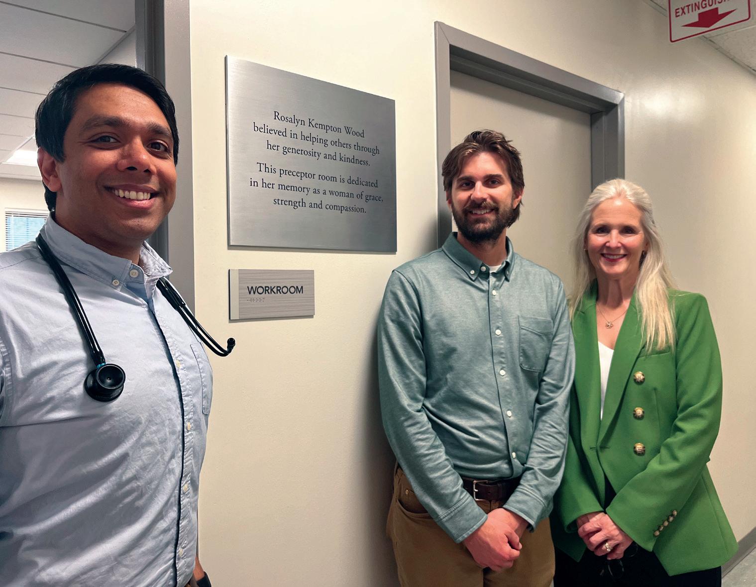 The late Rosalyn Kempton Wood was a generous benefactor and longtime friend of GLFHC whose philanthropy reflected a deep commitment to health care, education, and women’s rights. In her honor, the Physician Precepting Room at our 34 Haverhill Street clinic in Lawrence now bears her name. It is a space where experienced physicians train and mentor the next generation of residents in delivering compassionate, patient-centered care, a cause that was deeply aligned with her values. Pictured here during the dedication are, from left, Medical Site Director Tuhin Roy, MD (graduate of the LFMR Class of 2021); Lawrence Family Medicine Residency Program Director Nicholas Weida, MD; and Claire Wilkes, Rosalyn’s daughter.