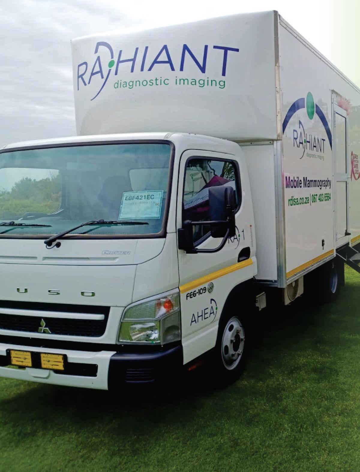 Radhiant,basedinEastLondon,EasternCape,was thusbornwithafocusedpurpose,initiallyservingthe Border-Keiregion;oneofthepoorestofthecountry, andwithonly4privateradiologypracticesacrossthe entireprovince,withapopulationofover7million. FoundedinJanuary2023,itisSouthAfrica’sfirst fullymobilemammographycompany