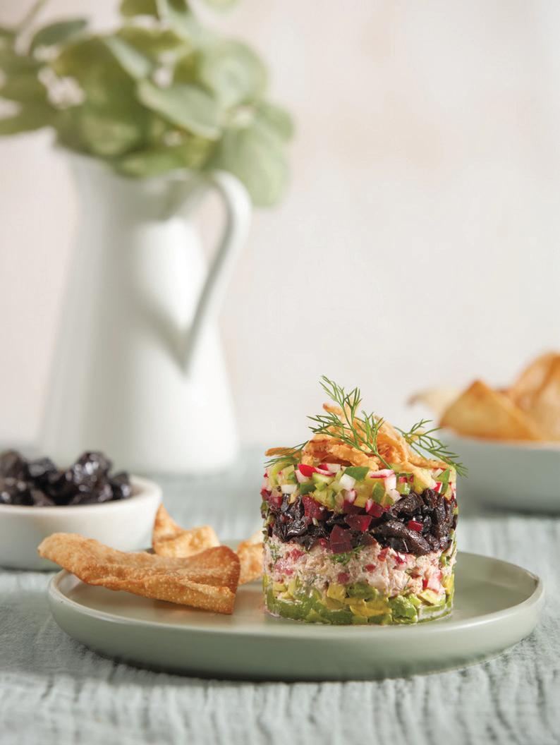 Whether you’re looking to up your game the next time you host or just enjoy a healthy dish, this elevated appetizer does the trick. It contrasts flavours and textures, combining the crunch of cucumber, the soft savouriness of crab, and the natural sweetness of prunes. Delicious and visually striking, this appetizer will leave an impression whenever you serve it.