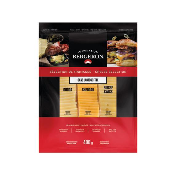 Bergeron’s Inspiration Slicers make it effortless to bring that craftsmanship straight to your table. This versatile assortment of Gouda, Cheddar, and Swiss cheeses makes everyday cooking easy and delicious. Conveniently packaged and perfectly portioned, these slices melt beautifully and pair well with everything from quick snacks to elevated comfort food. Try