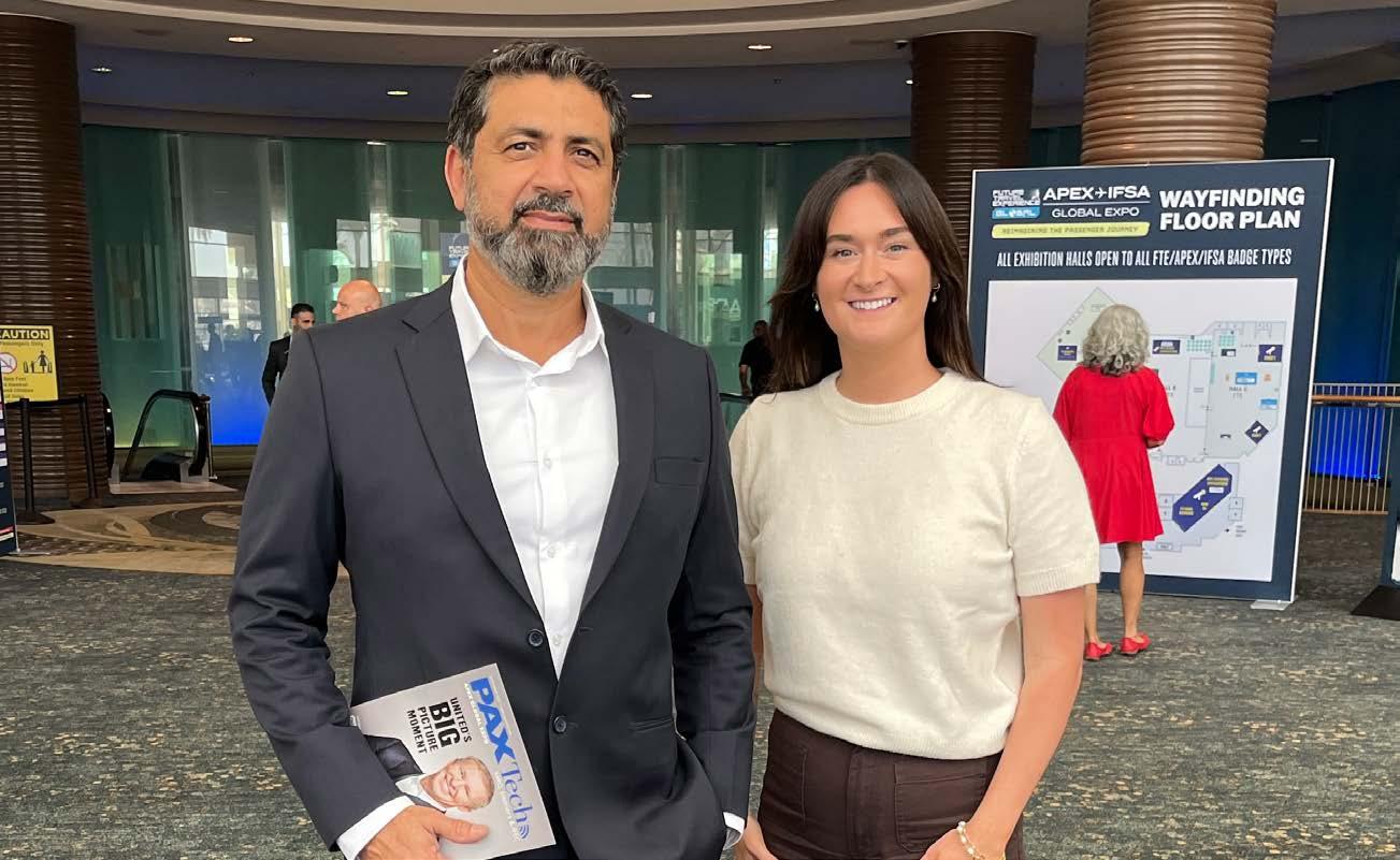 flyadeal CEO Steven Greenway (left) and PAX International Managing Editor Jane Hobson at IFSA Global EXPO in Long Beach, California in September 2025