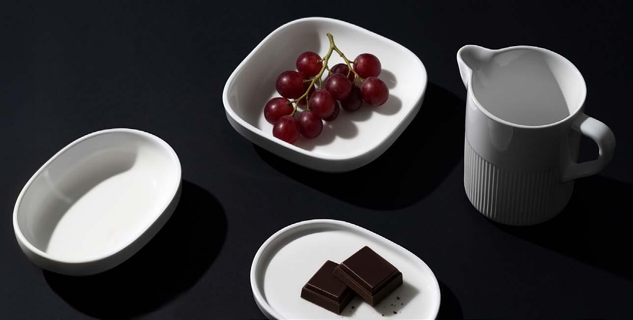 dawn and dusk into subtle gradients of blue, pink and orange across the collection’s minimalist forms. The result is a tableware line that feels refined and distinctly regional.