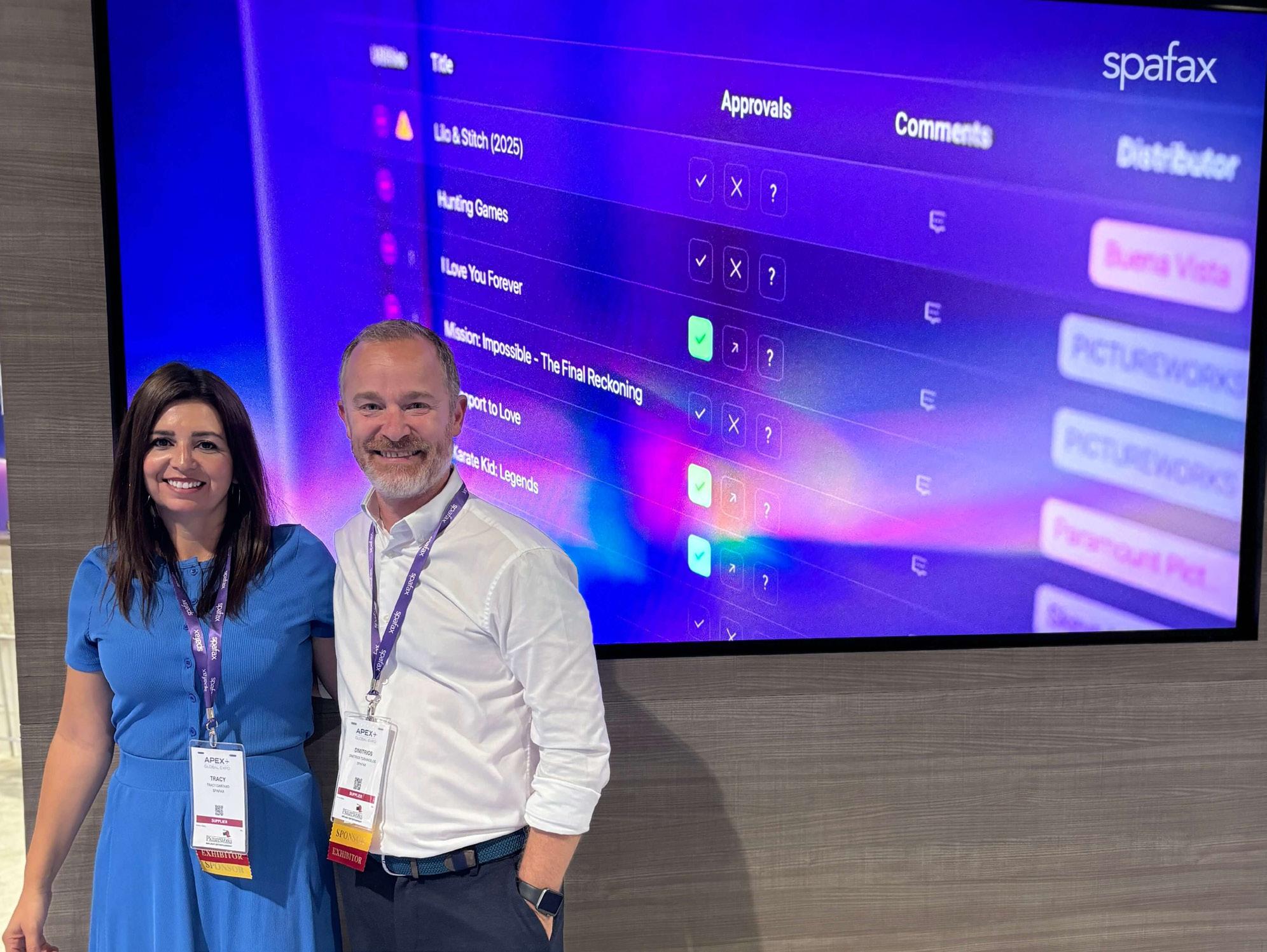 Tracy Cartaxo, Senior Global Product Owner, Spafax, and Dimitrios Tsirangelos, VP Business Development IFE Technology & Innovation, Spafax at APEX Global EXPO 2025