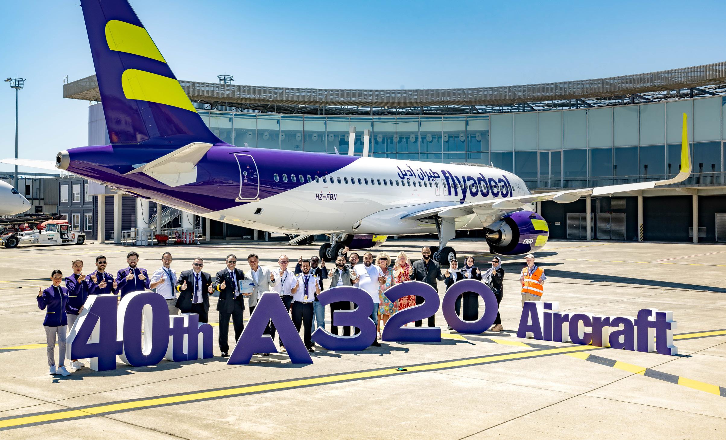 flyadeal staff join Airbus management for the airline’s 40th aircraft delivery in Toulouse
