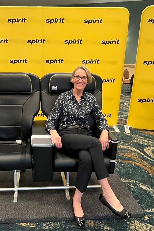 Lania Rittenhouse, Vice President, Guest Experience, Brand/ Communications, Spirit Airlines, smiles while seated in the newly announced HAECO Vector Premium seats