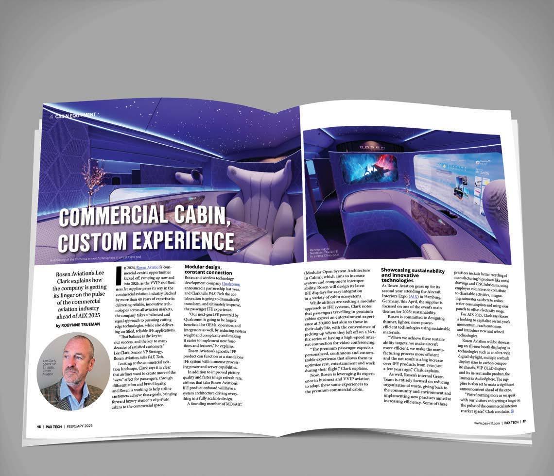 Rosen Aviation’s Maverick VR First Class/Business Class demo with Audiosphere. Read more about Rosen’s premium passenger experience approach to design on page 18.