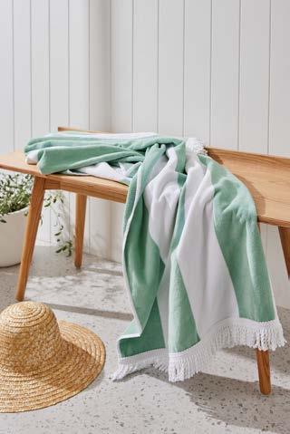 bold stripes, rope fringing, waffle textures and hues of blues and green pay homage to holidays on shore and on deck.