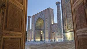Das Herz dieser Stadt: Der Registanplatz mit den berühmten Medressen Scherdor, Ulugbek und Tilla Kori. Auch die Moschee Bibi Chanum und das einzigartige Mausoleum Gur Emir, in dem Tamerlan (zentralasiatischer islamischer Militärführer) und seine Nachkommen begraben sind, stehen dort.