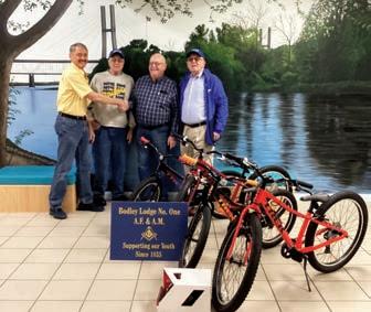 Members of Bodley lodge No.1, Quincy Illinois, presented bikes to the Quincy Public Library for their summer Reading Challenge program. Bodley Lodge is proud to have been furnishing the bikes for the library’s summer reading program for the last seven years.