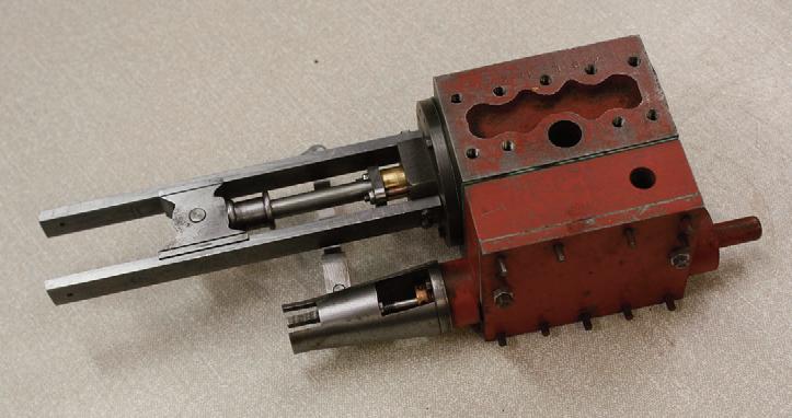 brass bolted together to allow for 1/2” PTFE rings. The cylinder blocks were gunmetal which wouldn’t be my choice so once I had finished work on the cylinders, I made three sets of bobbins. I say three as with a colleague we spent a day getting as good a fit in the liners as possible. Then I knocked on Len Steel’s door asking him to put some oil grooves in the valves. I wasn’t going to have piston rings.