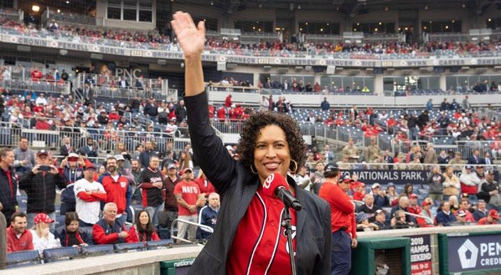 Mayor Muriel Bowser at the Washington Nationals home opener on April 1. Courtesy Office of the Mayor.