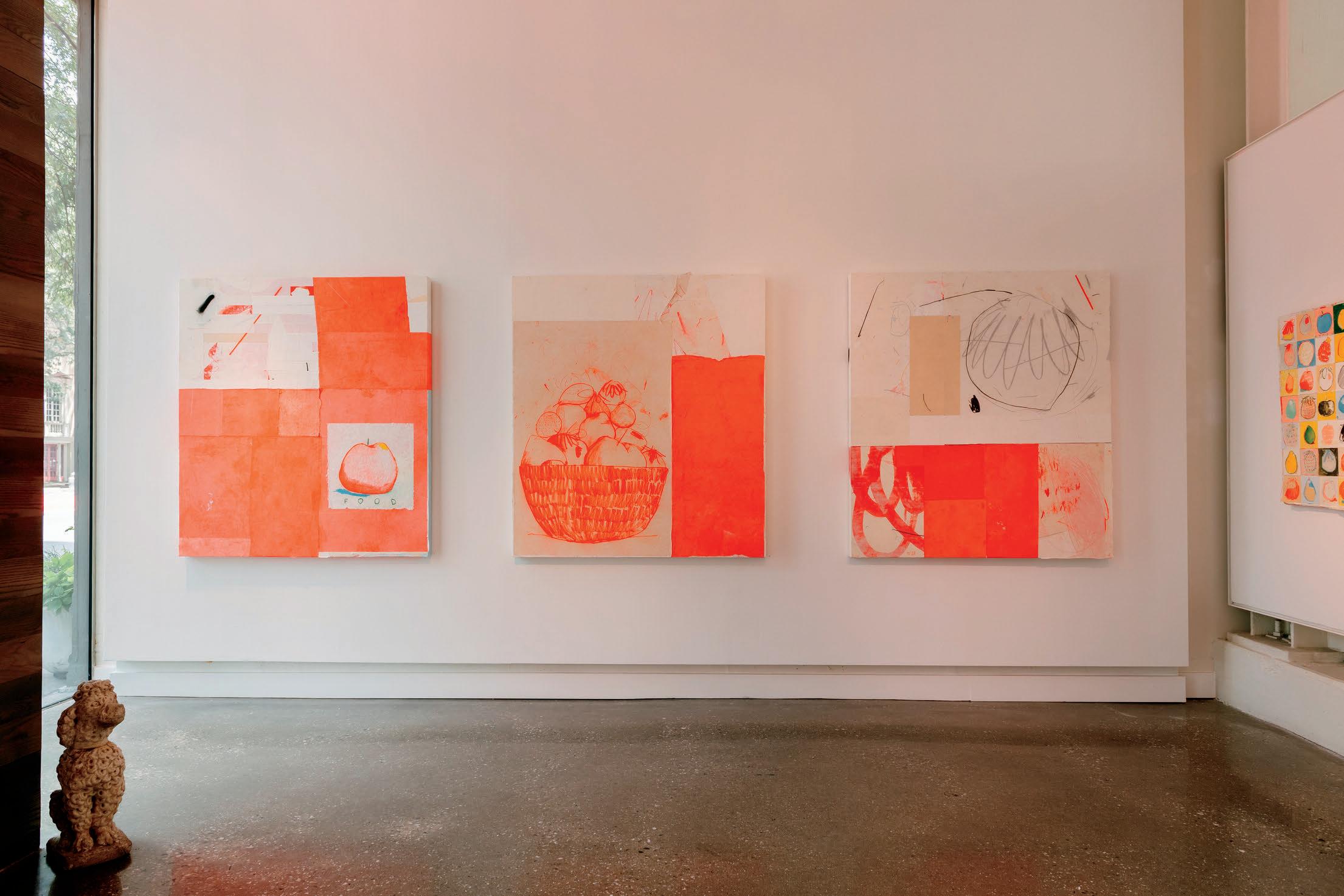 Robin Sutliff surrounded by her paintings at Gallery L’Enfant. Photo by Jordan Tovin.