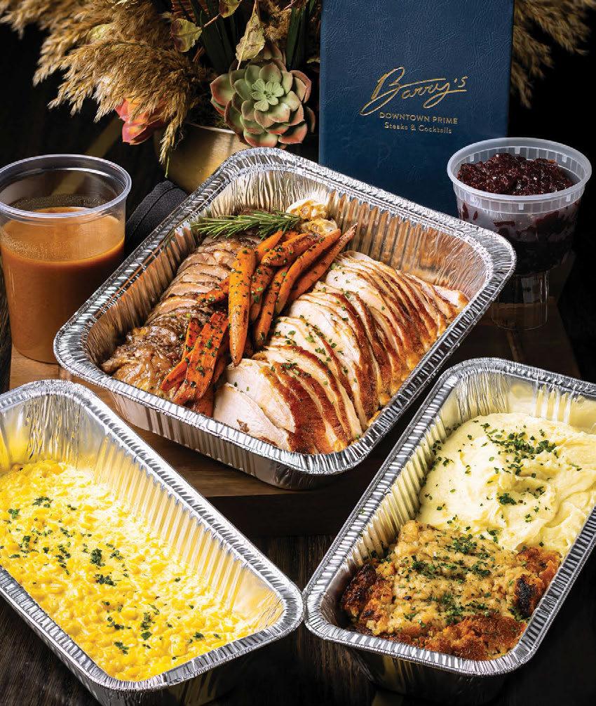 Includes: white & dark turkey meat, mashed potatoes, traditional stuffing, baby carrots, creamed corn, cranberry sauce, turkey gravy